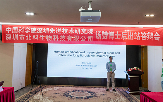 7月27日,由中國科學(xué)院深圳先進(jìn)技術(shù)研究院與深圳市北科生物科技有限公司聯(lián)合培養(yǎng)的博士后湯贊博士出站答辯會在北科大廈舉行。答辯會上,湯贊博士匯報了題為《臍帶間充質(zhì)干細(xì)胞通過巨噬細(xì)胞緩解肺纖維化》的出站答